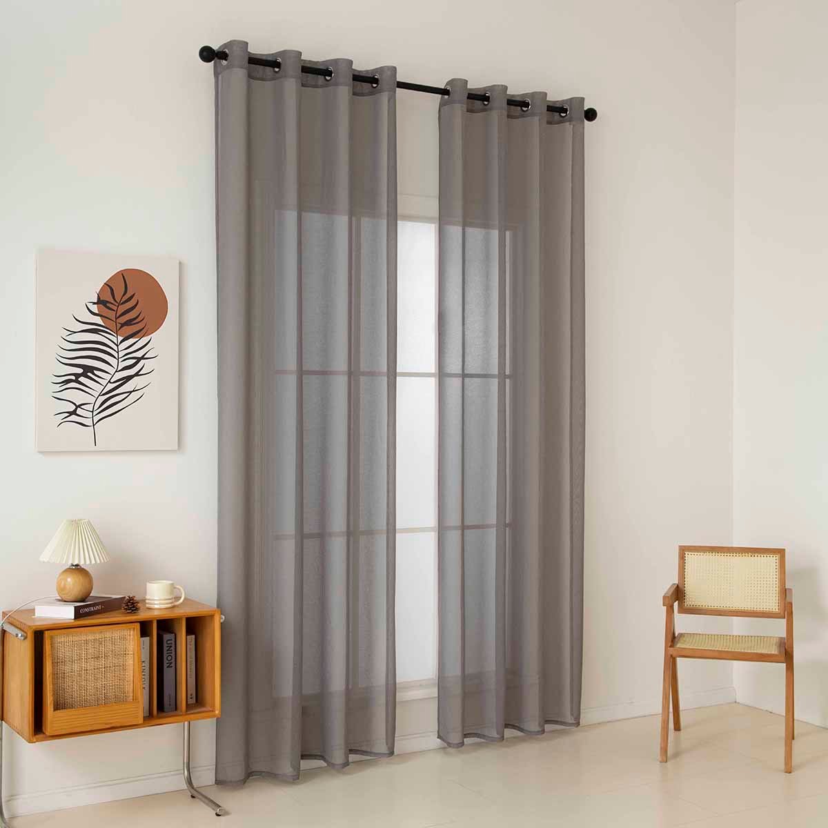 Beauty Home Κουρτίνα γάζα μονόχρωμη με 8 μεταλλικούς κρίκους Sharp Art 8448 140×270 Μπεζ