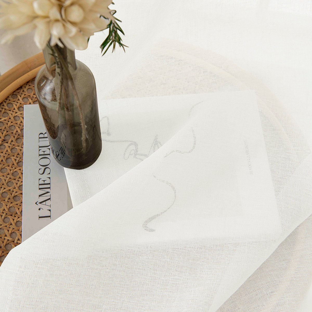 Το ελαφρύ, ημιδιαφανές ύφασμα επιτρέπει στο φως να διαχέεται αρμονικά, δημιουργώντας μια αίσθηση ηρεμίας και ευρυχωρίας, χωρίς να μειώνεται η ιδιωτικότητα του χώρου. Η κουρτίνα προσφέρει λεπτή και φυσική ροή, χαρίζοντας μία ανάλαφρη κίνηση που αναδεικνύει κάθε εσωτερικό περιβάλλον.