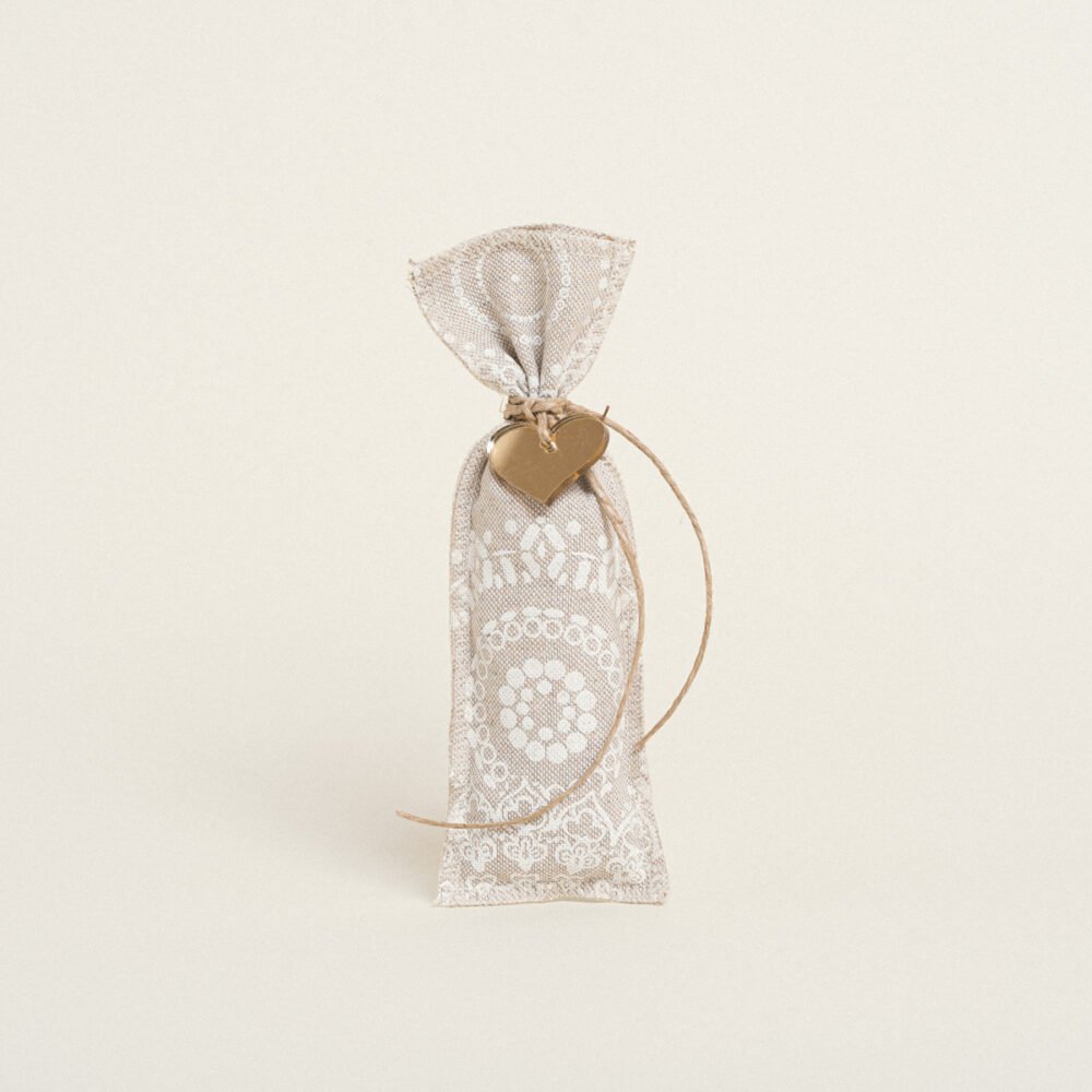 Υφασμάτινο Πουγκί Διαστάσεις 6 x 19 cm Σύνθεση 80% Βαμβάκι – 20% Polyester Το υφασμάτινο πουγκί μπορεί να χρησιμοποιηθεί για την δημιουργία μπομπονιέρας Γάμου και Βάπτισης ή ως υλικό συσκευασίας για κοσμήματα, γούρια και χειροποίητα ειδή. Το ιδιάιτερο μακρόστενο σχήμα του αποτελεί βάση για μια κομψή και πρωτότυπη μπομπονιέρα. Το πουγκί είναι υλικό που απελευθερώνει την δημιουργικότητα, μπορεί να συνδυαστεί με κορδόνια, κορδέλες και άλλα στοιχεία. Το πουγκί είναι κατασκευασμένο με ύφασμα πιστοποιημένο με Oeko-tex Standard 100 Product class II Σημαντική διευκρίνηση – Το προϊόν αφορά μόνο στο πουγκί, τα υλικά που χρησιμοποιήθηκαν αποτελούν μέρος της παρουσίασης του προιόντος και δεν συμπεριλαμβάνονται.
