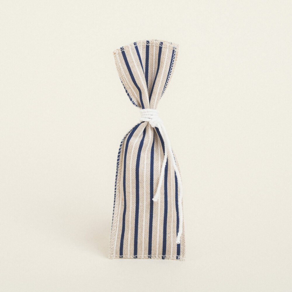 Υφασμάτινο Πουγκί Διαστάσεις 6 x 19 cm Σύνθεση 80% Βαμβάκι – 20% Polyester Το υφασμάτινο πουγκί μπορεί να χρησιμοποιηθεί για την δημιουργία μπομπονιέρας Γάμου και Βάπτισης ή ως υλικό συσκευασίας για κοσμήματα, γούρια και χειροποίητα ειδή. Το ιδιάιτερο μακρόστενο σχήμα του αποτελεί βάση για μια κομψή και πρωτότυπη μπομπονιέρα. Το πουγκί είναι υλικό που απελευθερώνει την δημιουργικότητα, μπορεί να συνδυαστεί με κορδόνια, κορδέλες και άλλα στοιχεία. Το πουγκί είναι κατασκευασμένο με ύφασμα πιστοποιημένο με Oeko-tex Standard 100 Product class II Σημαντική διευκρίνηση – Το προϊόν αφορά μόνο στο πουγκί, τα υλικά που χρησιμοποιήθηκαν αποτελούν μέρος της παρουσίασης του προιόντος και δεν συμπεριλαμβάνονται.