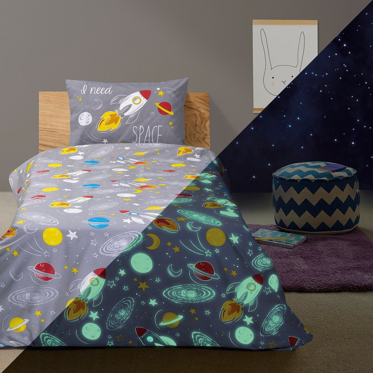 Σετ σεντόνια μονά φωσφοριζέ Scope . Το σετ περιλαμβάνει 1 τεμάχιο σε διάσταση 170×240 και 1 τεμάχιο μαξιλαροθήκη σε διάσταση 50×70+5 .