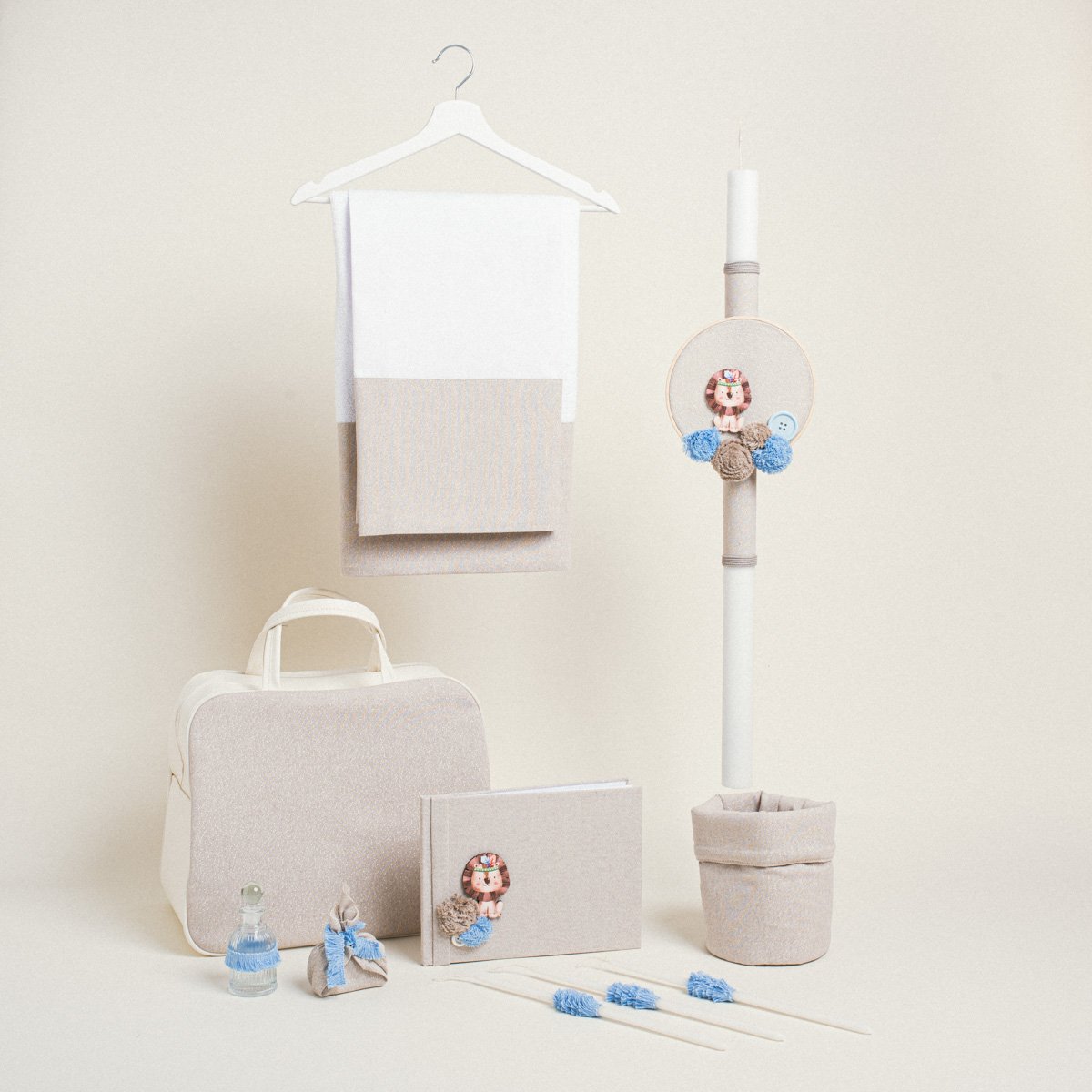 Ένα παιχνιδιάρικο και δυναμικό σετ βάπτισης με θέμα το λιονταράκι, ιδανικό για μια βάπτιση γεμάτη χαρά, περιπέτεια και παιδική ενέργεια.