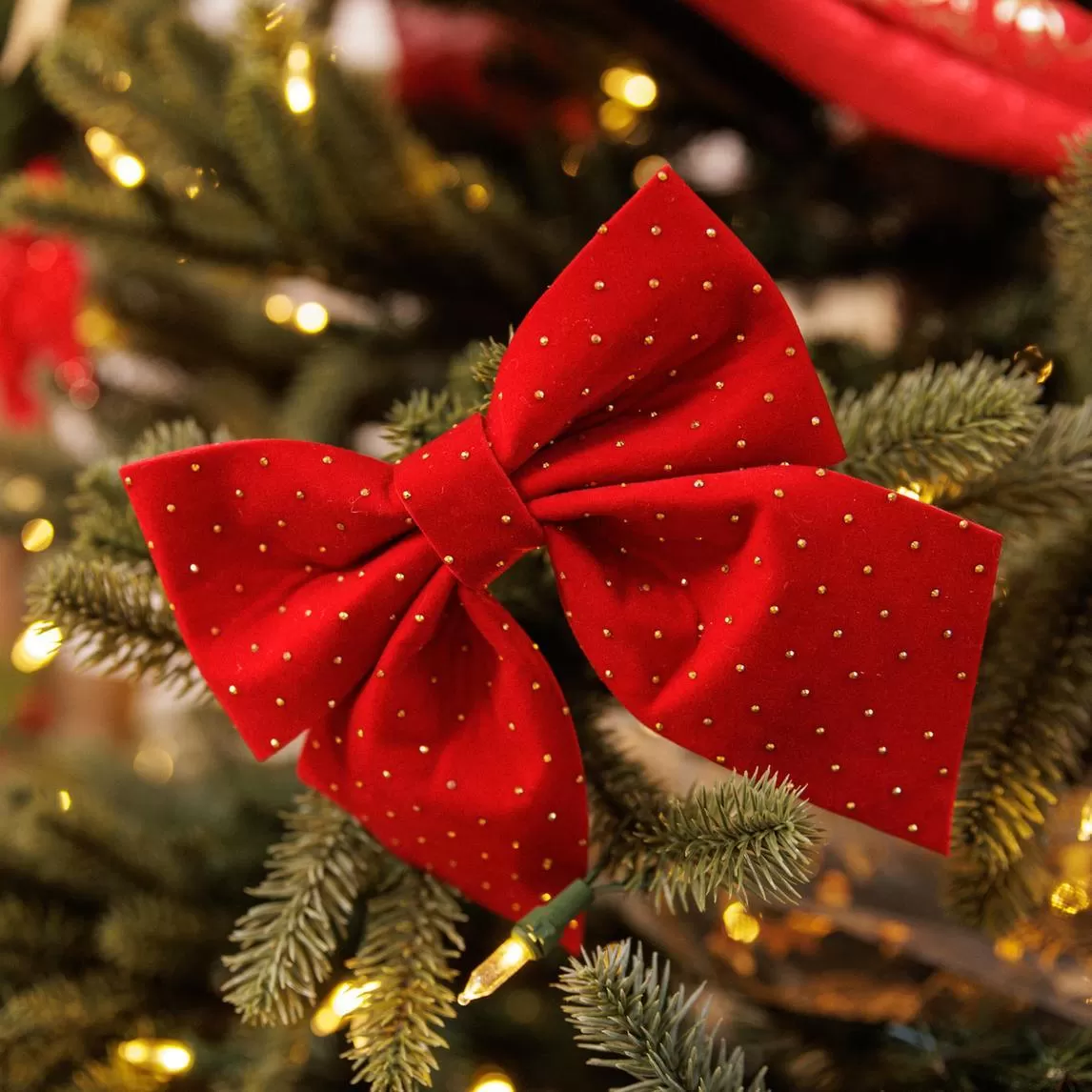 Beauty Home Σετ 2 Κόκκινων Βελούδινων Φιογκών με Χρυσά Στρας 15 x 15 cm