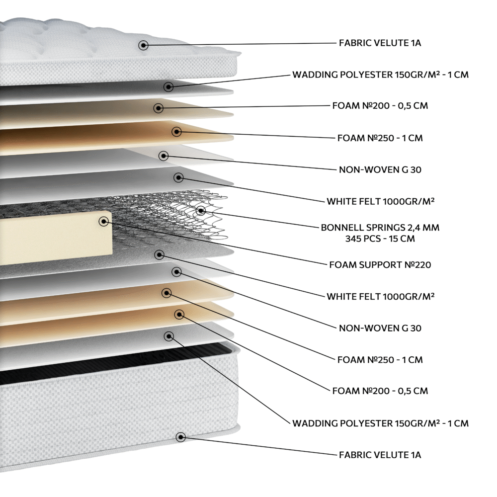 Σκληρό οικονομικό στρώμα με ελατήρια Bonnell, σχεδιασμένο για ανθεκτικότητα και σταθερή στήριξη. Το ύφασμα Velute 1A προσφέρει απαλή αίσθηση, ενώ παράλληλα διατηρεί τη φρεσκάδα και τη διαπνοή του στρώματος. Μια εξαιρετική επιλογή για όσους αναζητούν οικονομική αλλά αξιόπιστη στήριξη στον ύπνο τους.