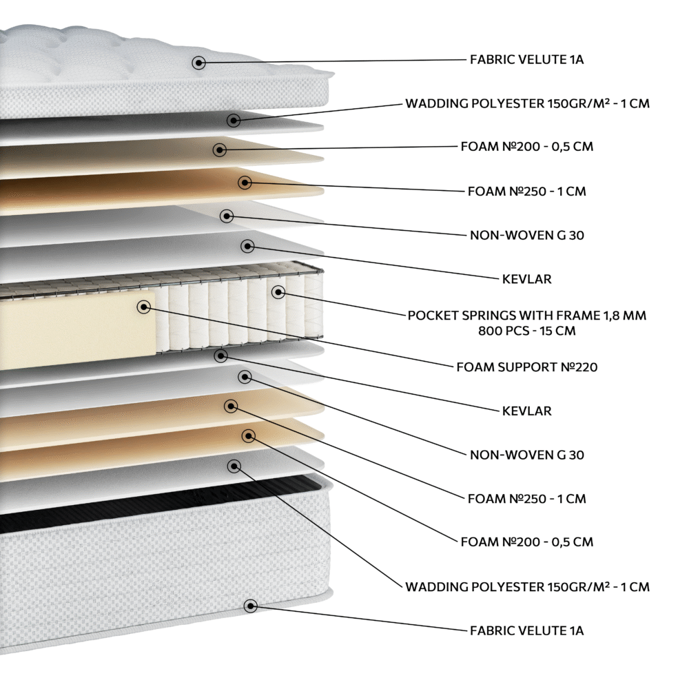 Σκληρό στρώμα με ανεξάρτητα ελατήρια Pocket, που προσφέρουν εξατομικευμένη στήριξη και αντοχή στον χρόνο. Οι στρώσεις αφρού διασφαλίζουν ομοιόμορφη κατανομή του βάρους και εργονομική στήριξη της σπονδυλικής στήλης. Το ύφασμα Velute 1A προσφέρει απαλή αίσθηση και σωστό αερισμό για δροσερό και υγιεινό ύπνο. Μια εξαιρετική επιλογή για όσους αναζητούν σταθερότητα, στήριξη και άνεση, με υλικά που συμβάλλουν στη σωστή κυκλοφορία του αέρα και στην αίσθηση φρεσκάδας κατά τη διάρκεια του ύπνου.