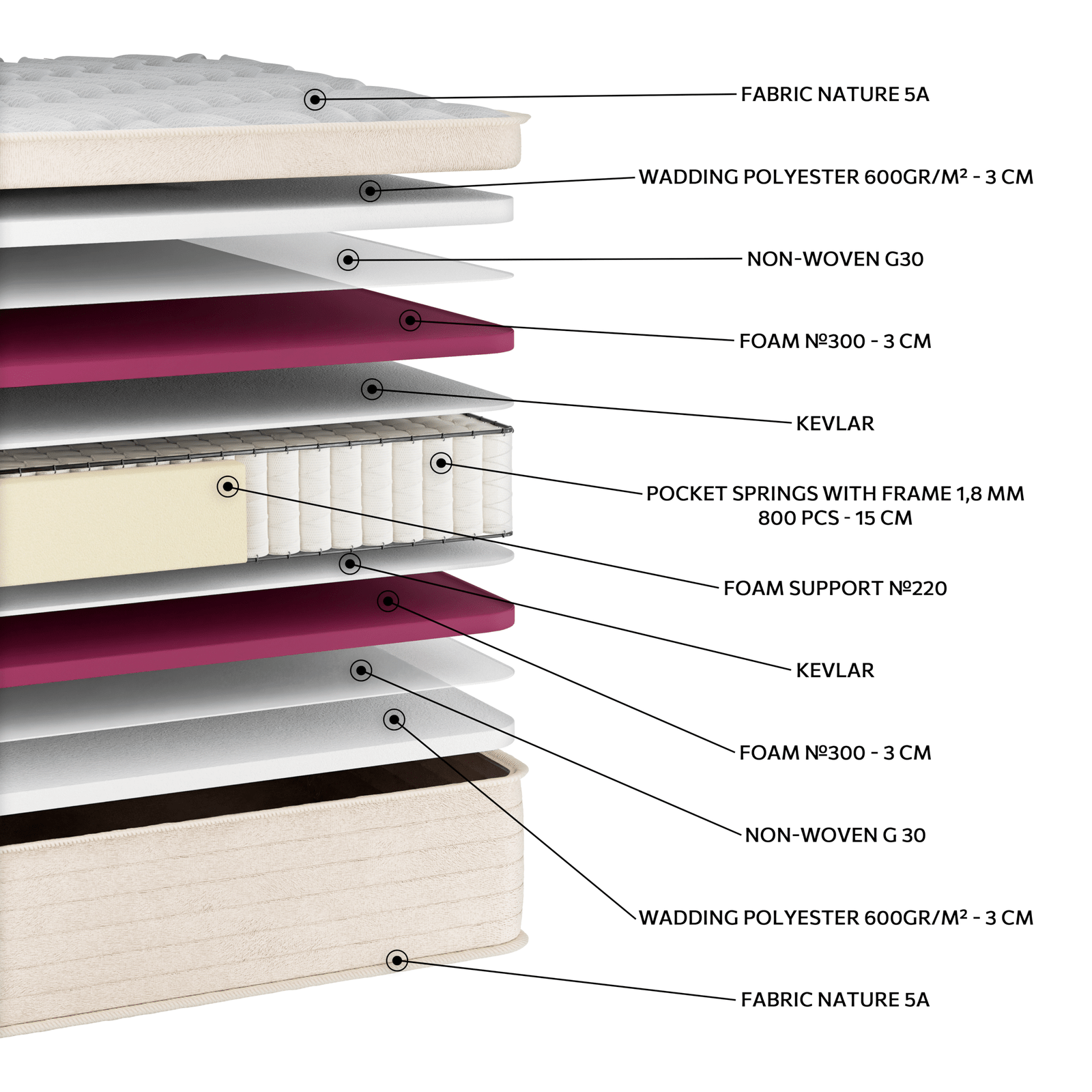 Στρώμα μέτριας σκληρότητας με ανεξάρτητα ελατήρια Pocket που προσαρμόζονται στις κινήσεις του σώματος, προσφέροντας εξατομικευμένη στήριξη και σταθερότητα. Οι στρώσεις αφρού υψηλής ποιότητας κατανέμουν ομοιόμορφα το βάρος και μειώνουν τα σημεία πίεσης, ενώ το ύφασμα Nature 5A ενισχύει τη φυσική διαπνοή για δροσερό και υγιεινό ύπνο. Μια εξαιρετική επιλογή για όσους επιθυμούν ισορροπημένη στήριξη με άνετη αίσθηση.